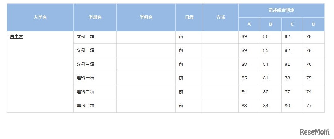ベネッセマナビジョンは2025年6月6日、高校3年生・高卒生対象の「進研模試 総合学力記述模試・4月」のデータに基づいた「合格可能性判定基準」を公開した。合格可能性80%以上の偏差値は、東京大学の文科一類89、文科二類89、理科三類88、京都大学の法88、医87など。