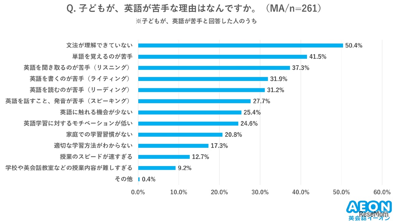 子供が英語が苦手な理由はなんですか?