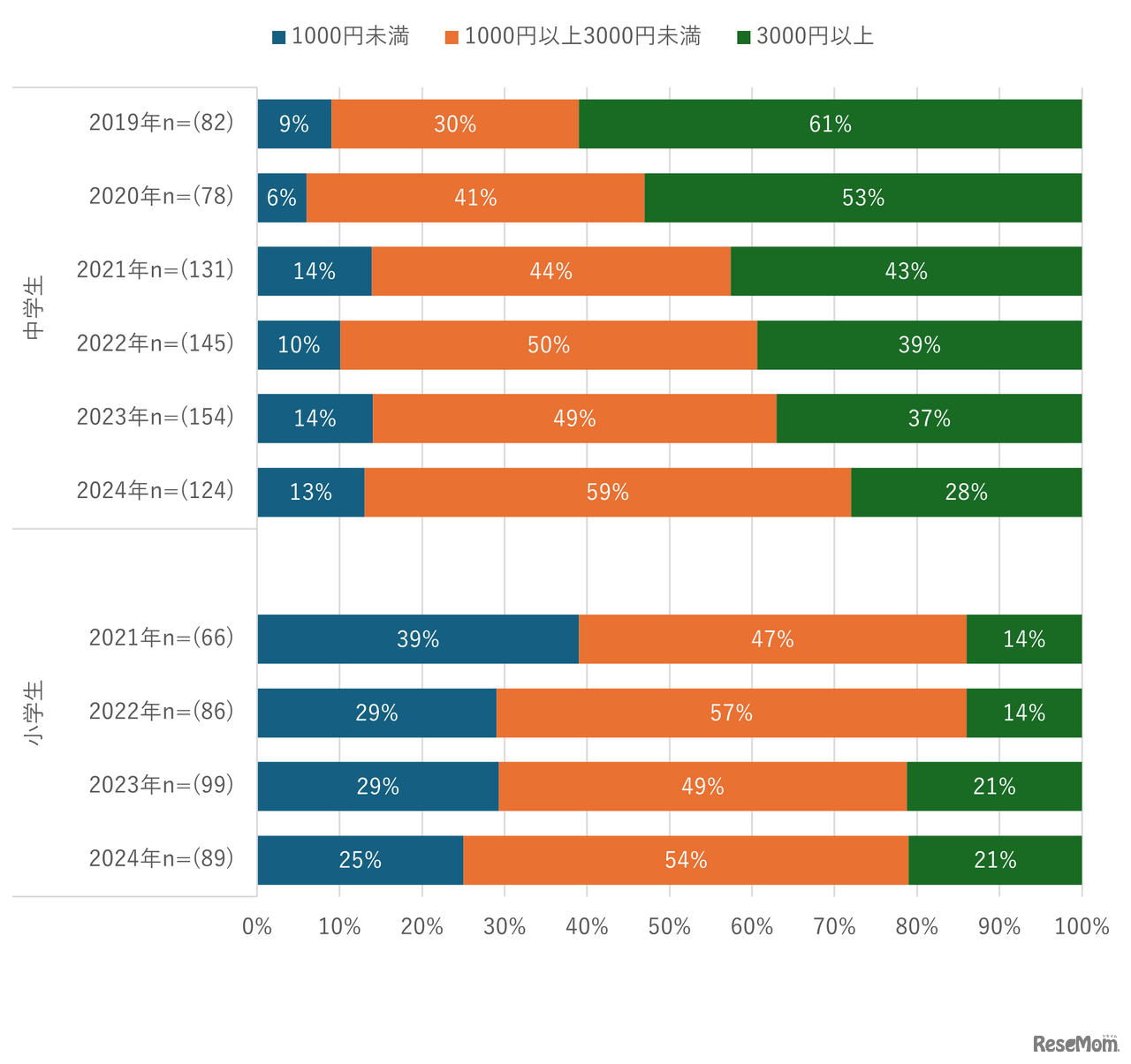 NTTドコモのモバイル社会研究所は2025年6月30日、「子どものケータイ利用に関する調査」の結果を公表した。全国の中学生のスマホ利用料金のボリュームゾーンは、2019年「3,000円以上」から「1,000円~3,000円未満」に変化したことがわかった。