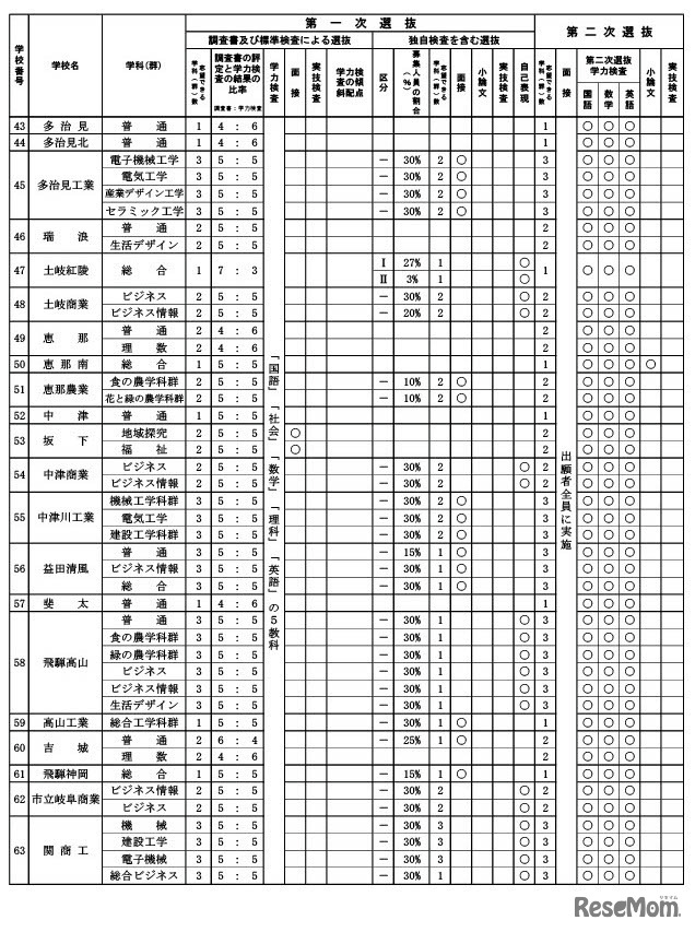【高校受験2026】岐阜県公立高入試、全日制63校が実施…岐山・大垣東は傾斜配点 3枚目の写真・画像