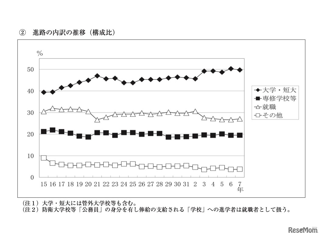 秋田県教育委員会は2025年7月3日、2025年(令和7年)3月卒業者の進路状況調査の結果を公表した。県内公私立高校(全日制)卒業者総数は6,489人。その内、大学進学率は前年度(2024年度)比0.6ポイント減の49.7%で、初の5割超えとなった前年度からやや微減に転じた。