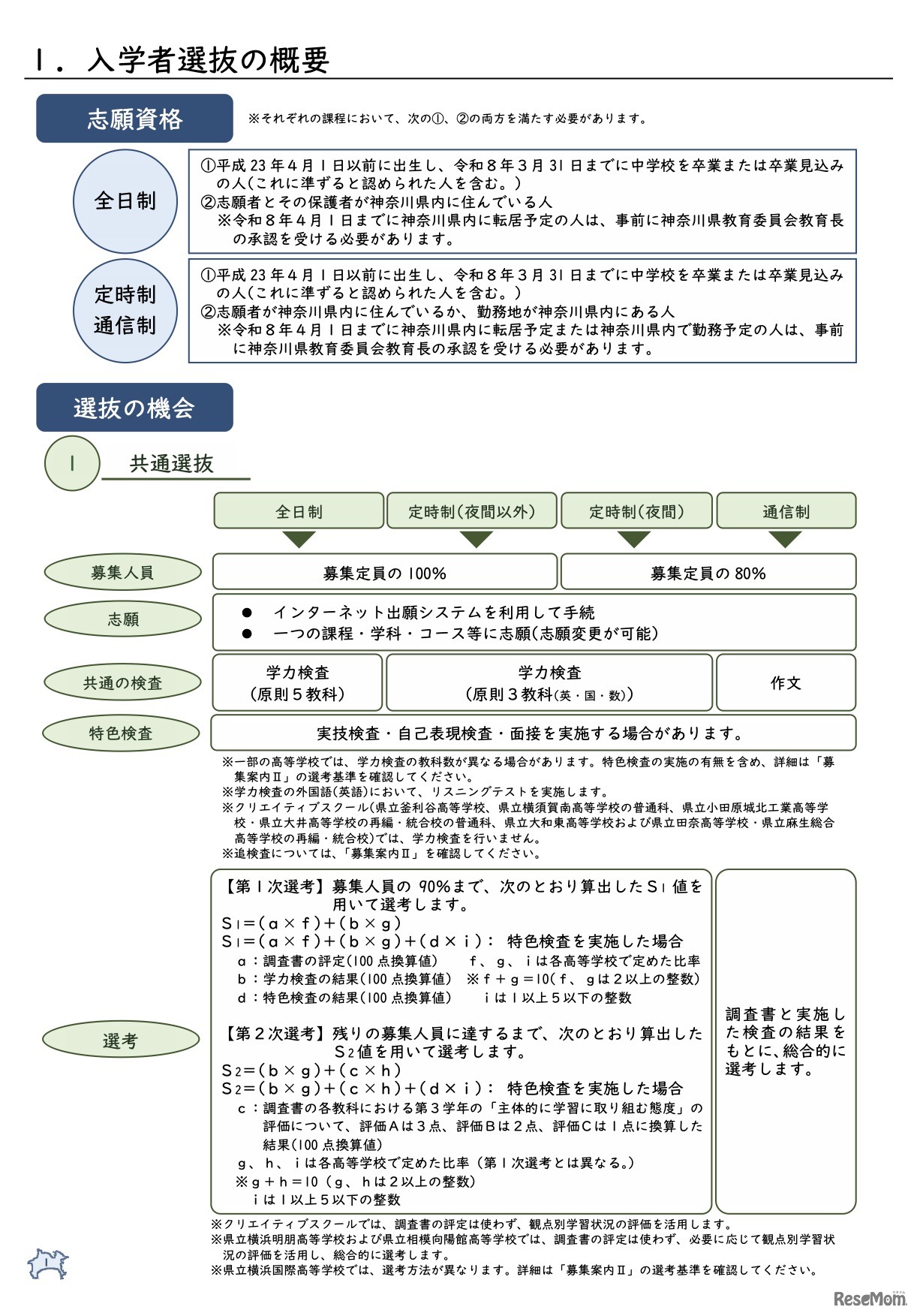 画像出典:神奈川教育委員会 入学者選抜の概要