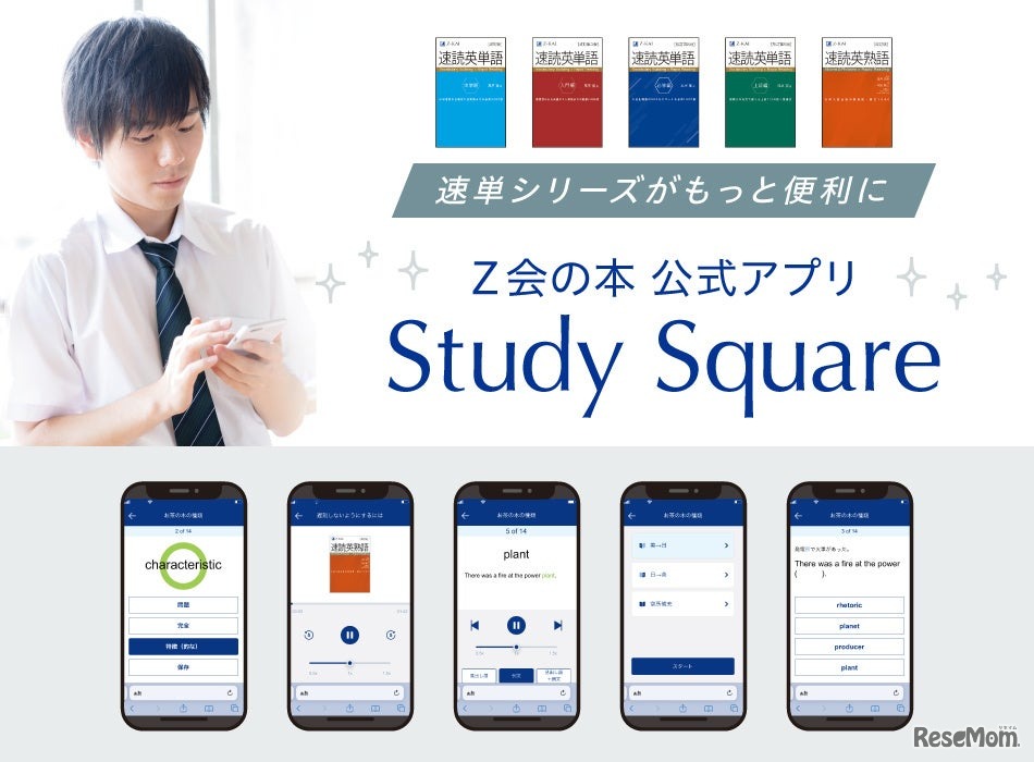 Z会ソリューションズは、英語学習の質を一層高めるための無料Webアプリ「Study Square」を2025年7月1日にリリースした。大学受験用英単語集・熟語集売上No.1の「速読英単語(速単)」シリーズの学習をサポートする。