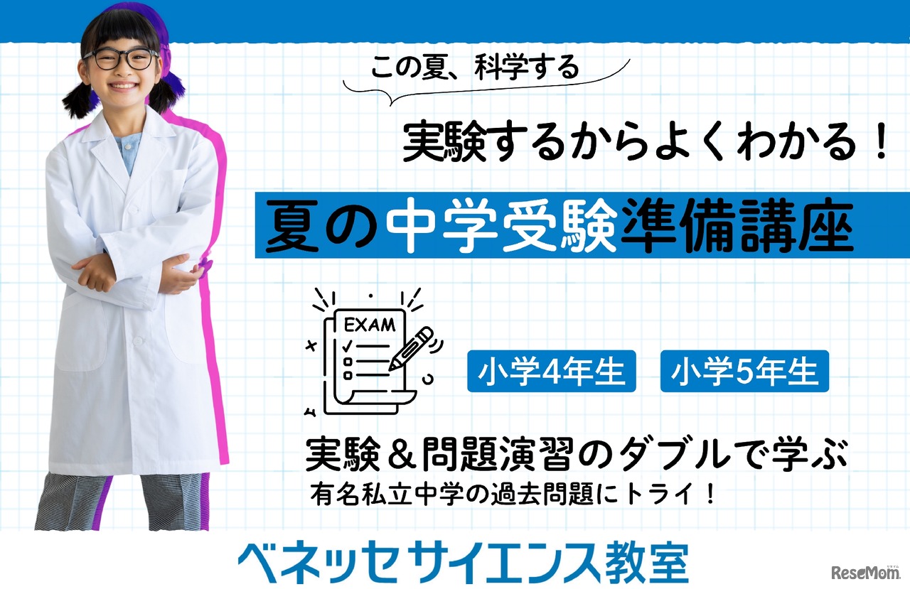 ベネッセグループの東京個別指導学院は、運営するベネッセサイエンス教室において、小学4年・5年を対象に「夏の中学受験準備講座」を開講する。