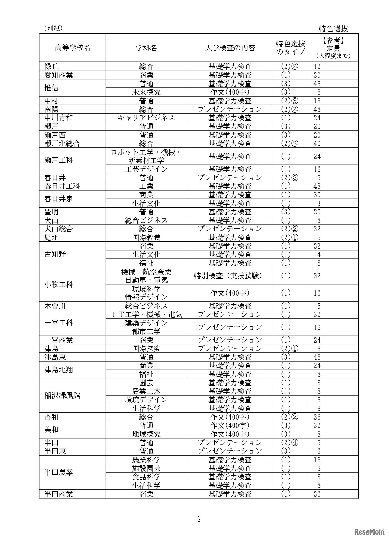 愛知県教育委員会は2025年7月7日、2026年度(令和8年度)愛知県公立高等学校入学者選抜(全日制課程)における特色選抜を実施する高等学校・学科および入学検査の内容について公表した。
