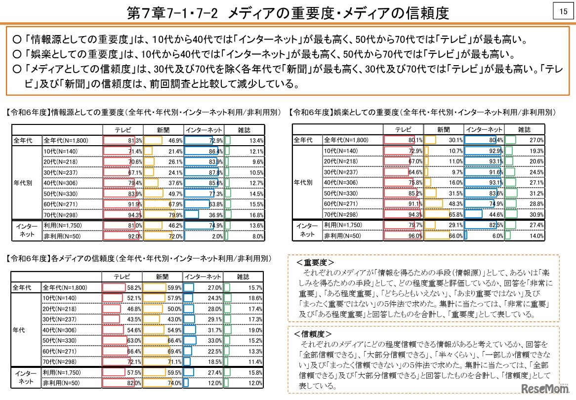 画像出典:総務省情報通信政策研究所 メディアの重要度・メディアの信頼度