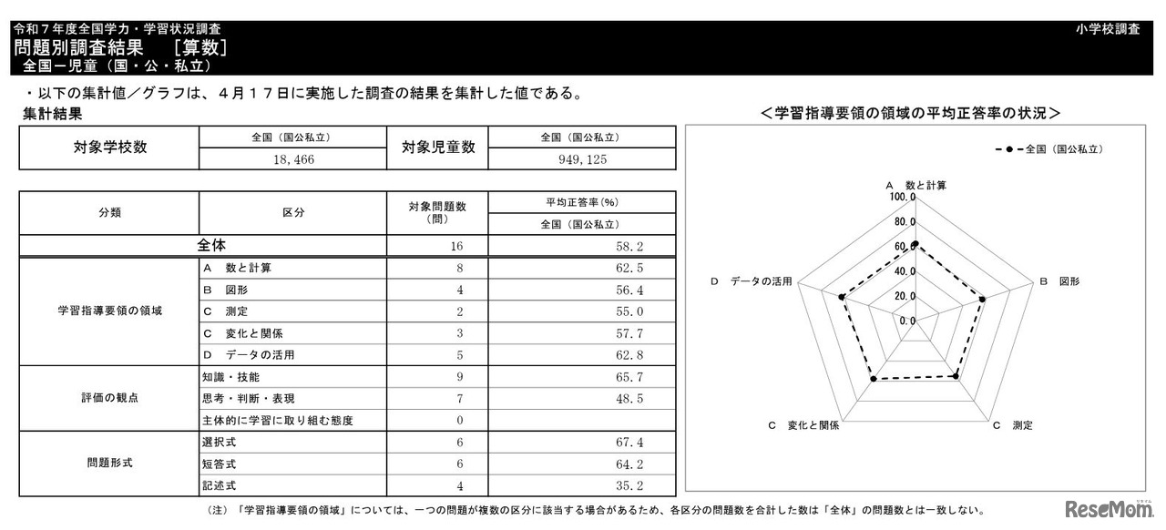 文部科学省は2025年7月14日、2025年度(令和7年度)全国学力・学習状況調査(全国学力テスト)の結果を公表した。国語と算数・数学の平均正答率は、小学校・中学校ともに前年度を下回った。初めてCBT形式で実施した中学校理科は、平均正答率ではなく、平均IRT(項目反応理論)スコアが示された。