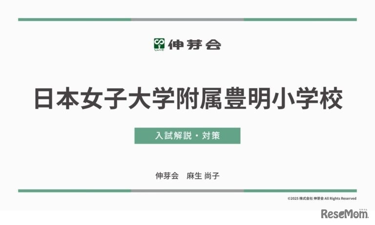 伸芽会は2025年7月10日、「2025年度 名門私立小学校入試対策説明会IV」の動画配信を開始した。暁星小学校・白百合学園小学校・日本女子大学附属豊明小学校の3校について、学校情報・入試情報・合格対策を伝える。