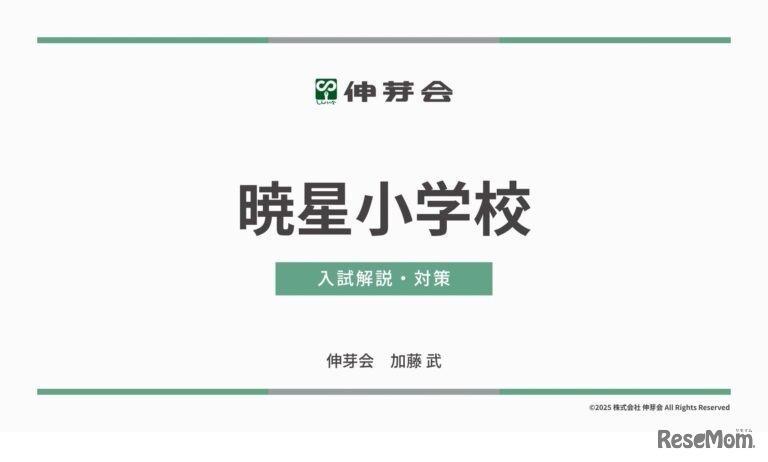 伸芽会は2025年7月10日、「2025年度 名門私立小学校入試対策説明会IV」の動画配信を開始した。暁星小学校・白百合学園小学校・日本女子大学附属豊明小学校の3校について、学校情報・入試情報・合格対策を伝える。