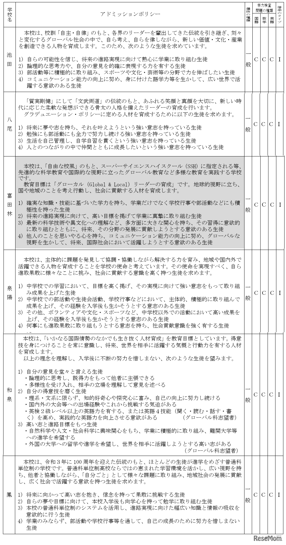 大阪府教育委員会は2025年7月9日、2026年度(令和8年度)大阪府公立高等学校入学者選抜における各校のアドミッションポリシー、学力検査問題の種類・成績、調査書の評定にかけるタイプを公表した。
