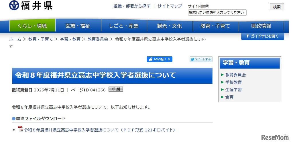 【中学受験2026】福井県、高志中学校入学者選抜を公表 1枚目の写真・画像