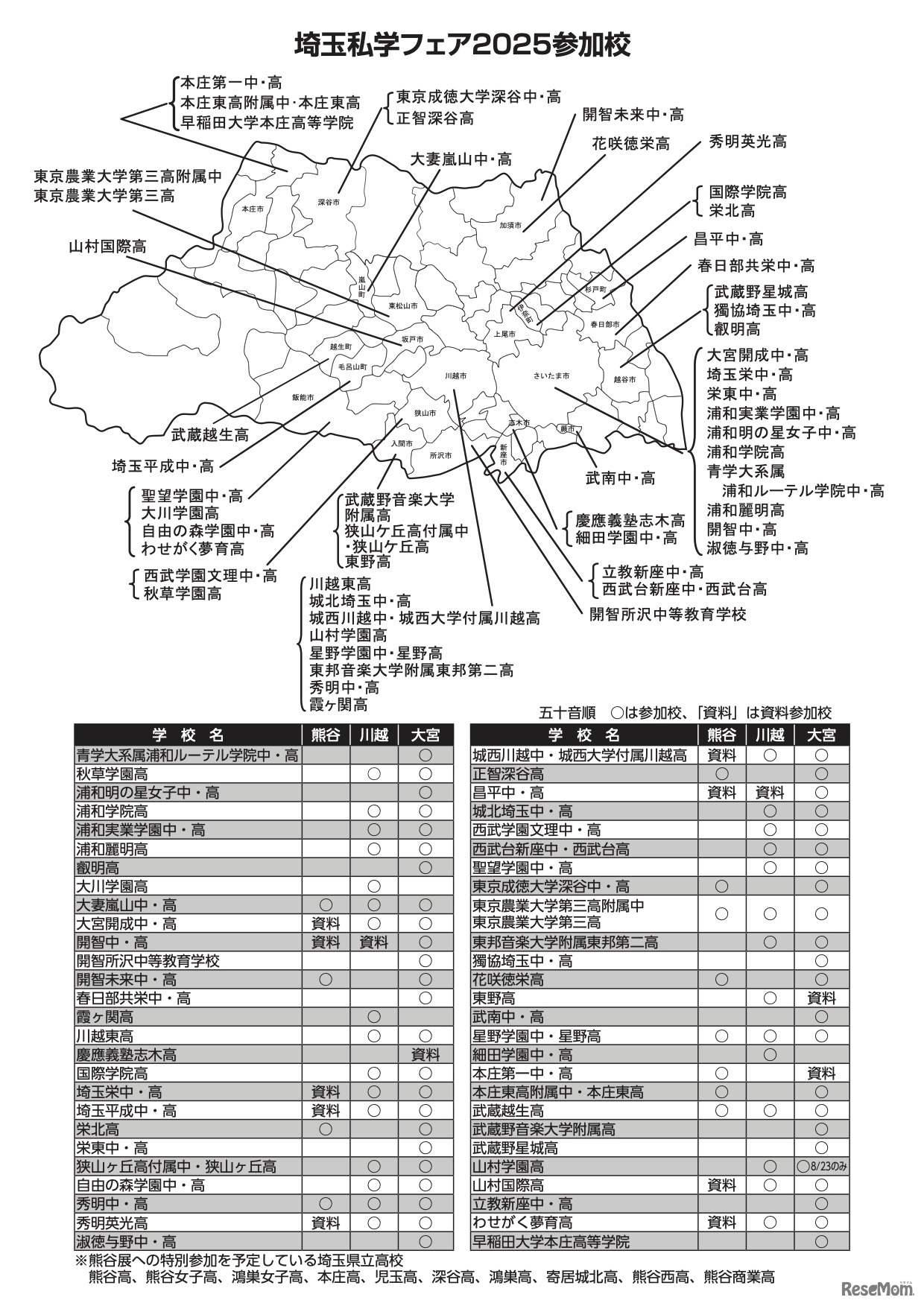埼玉私学フェア2025 参加校
