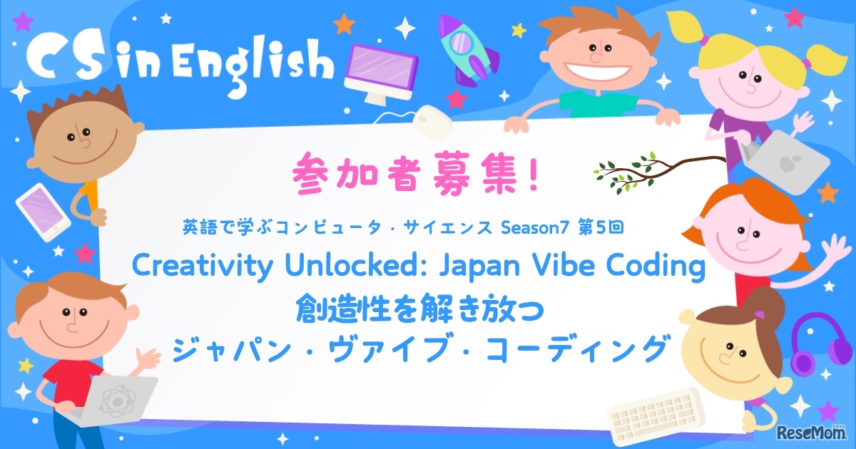 GoogleやAmazonの現役エンジニアと一緒に英語でプログラミングを学ぶオンラインイベントCS in English Season 7の第5回「Japan Vibe Coding」が2025年7月27日に開催される。対象は9歳以上の小・中学生で、参加費は無料。今回は神戸での対面イベントも同時開催する。