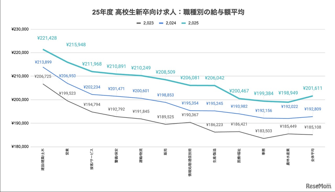 2026年卒の高校生の初任給が、前年比105%増の平均20万1,611円となったことが2025年7月14日、ハンディの調査からわかった。初任給額がもっとも高かったのは建設業界。高卒の就職市場は、引き続き「超売り手市場」の状況といえる。