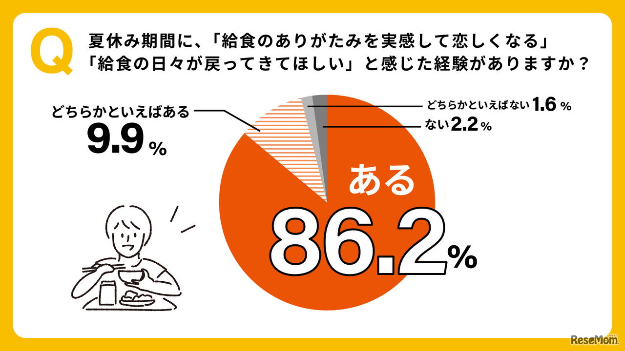 夏休みに給食のありがたみを実感する親が95%を超えることが2025年7月15日、大塚製薬が公表した調査結果からわかった。食事づくり・献立考案の大変さは感じつつも、子供の栄養を気に掛ける想いが見られた。