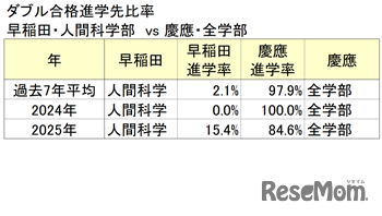 ダブル合格進学先比率 早稲田・人間科学部 vs 慶應・全学部