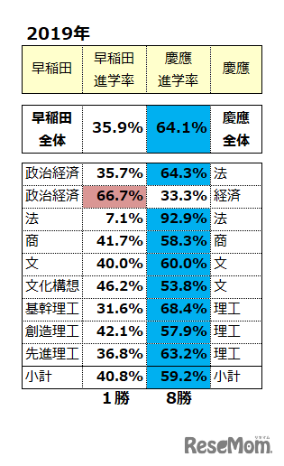 画像提供:ナガセ 早慶 同学部領域のみのW合格進学先結果2019年