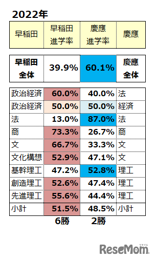早慶 同学部領域のみのW合格進学先結果2022年