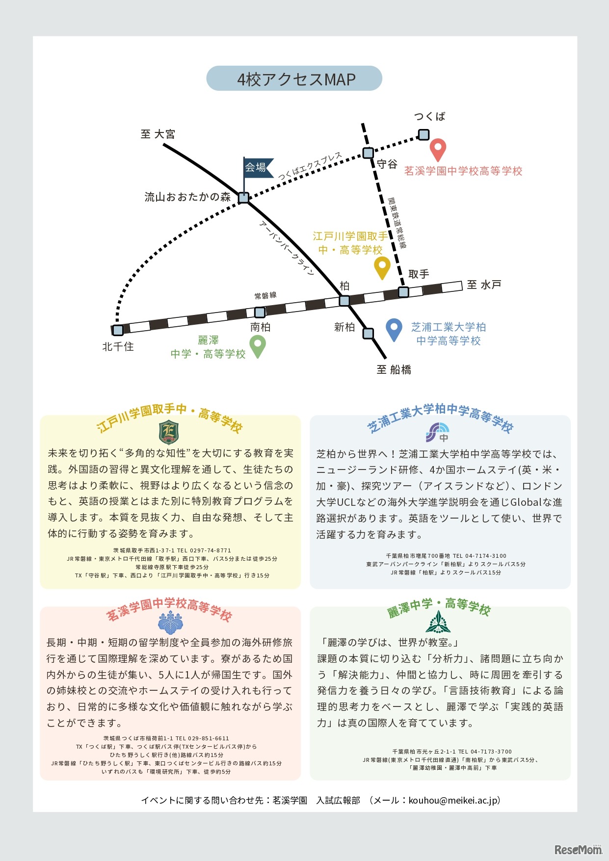 江戸川学園取手中・高等学校、芝浦工業大学柏中学高等学校、茗溪学園中学高等学校、麗澤中学・高等学校の4校は2025年8月26日、「国際教育に強い私学4校シンポジウム」をスターツおおたかの森ホールにて開催する。定員400名で先着順。