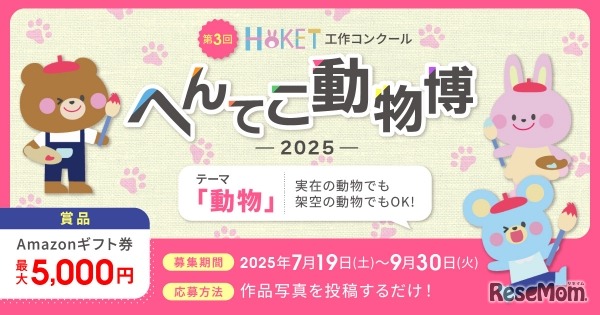 HOKETは2025年7月19日、「第3回HOKET工作コンクール」の募集を開始した。今回のテーマは「動物」。作品の上手さではなく「発想力」や「工夫」を重視して選考を行う。小学生以下の子供を対象に9月30日まで、作品を受け付ける。