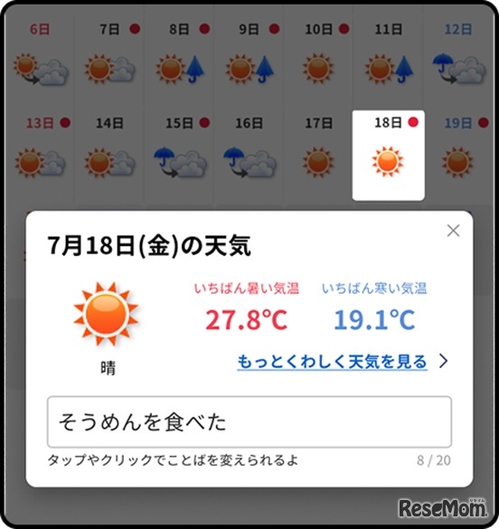 天気予報専門メディア「tenki.jp」は、tenki.jpメンバーシップの新コンテンツとして2025年7月22日から8月31日までの期間限定で「夏休みお天気メモ」の提供を開始した。日々の天気や気温を簡単に記録・確認でき、小学生の夏休みの宿題にも役立つコンテンツとなっている。