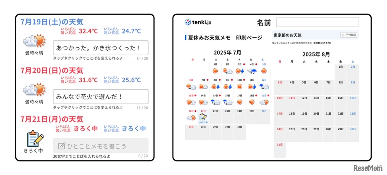 【夏休み2025】tenki.jp「夏休みお天気メモ」小学生の宿題にも 3枚目の写真・画像