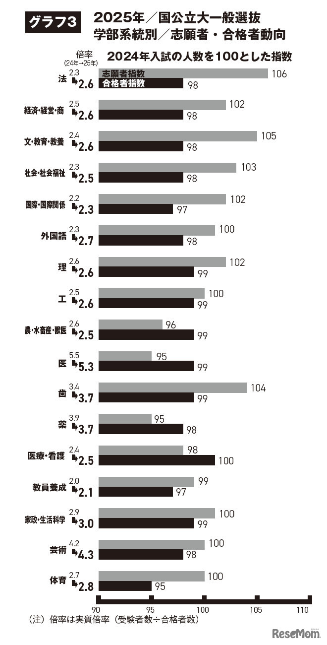国公立大学2025年度一般選抜、学部系統別志願者・合格者動向