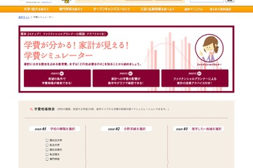 リクルートが運営する進学情報サイト「リクルート進学ネット」は3月28日、「学費シミュレーター」をリリースした。「学費シミュレーター」では、国公立や私立、学部や学科、進学を希望するエリアなどの条件で、初年度の学費や学費総額の相場を提示する。