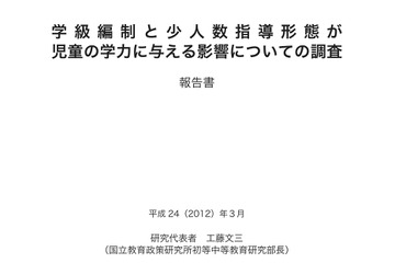 国立教育政策研究所は5月8日、「学級編制と少人数指導形態が児童の学力に与える影響についての調査」の報告書をホームページに掲載した。