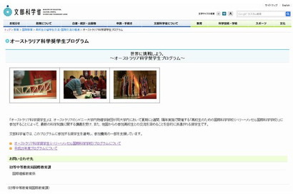 文部科学省は、国公私立高校、中等教育学校(後期課程)および高等専門学校の生徒を対象に、オーストラリア科学奨学生プログラムの参加者を募集する。奨学生の派遣期間は、2013年6月30日~7月13日。