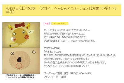 大日本印刷は4月27日、未就学児から小学校低学年を対象としたスペシャルワークショップ「スゴイ!へんしんアニメーション」をコミュニケーションプラザ ドットDNPで開催する。ワークショップの監修・運営NPO法人CANVASが行う。