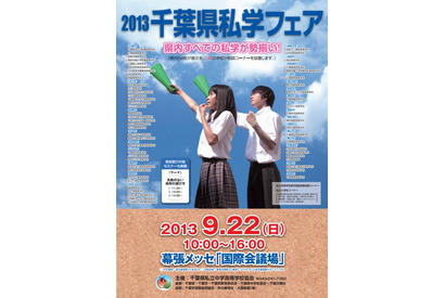 千葉県私立中学高等学校協会は9月22日、幕張メッセ国際会議場に県内すべての私学を一堂に集め「2013千葉県私学フェア」を開催する。県内の全私学58校が参加し相談コーナーを設置するほか、セミナーも開催されるという。