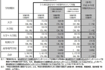 文部科学省は8月9日、「インターンシップの普及および質的充実のための推進方策について意見のとりまとめ」を公開した。資料では、大学教育におけるインターンシップ実施の現状に関して調査結果と今後の課題が報告されている。