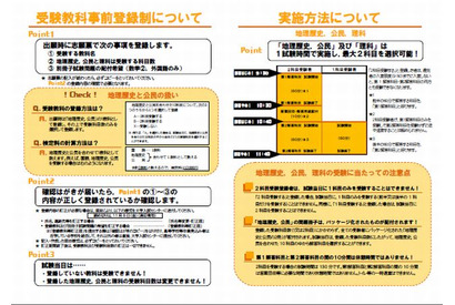 大学入試センターは8月1日、2014年度大学入試センター試験の変更点などを受験生向けにわかりやすく解説した「ここがポイント 平成26年度大学入試センター試験」を公開した。受験教科の事前登録方法や所持品の取扱いについて、ポイントをまとめている。