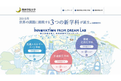 関西学院大学理工学部は、2015年4月に設置を予定している3学科の特設サイトをオープンした。新学科の研究内容などをわかりやすく紹介している。