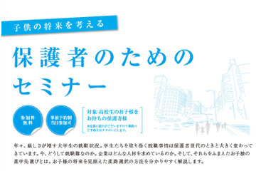 マイナビは、高校生の子どもを持つ保護者を対象とするセミナーを5月31日より、名古屋、東京、大阪、横浜、大宮の5会場で順次開催する。参加は無料。事前予約制、当日参加可能。