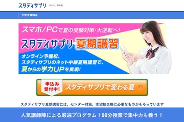 リクルートマーケティングパートナーズは、オンライン学習サービス「スタディサプリ」の高校生向け講座で、ネット生中継授業を夏休み期間限定で実施すると発表した。チャット形式の授業で、その場で質問にも答えてもらえる。料金は1コース4,980円(税別)から。