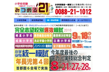 教育図書21は、年長児を対象にした「完全志望校別選抜模試」を9月18日、25日に東京国際フォーラムなどで実施する。早稲田や慶應などの難関小学校希望者や過去の統一模試の成績優秀者のみが受験できる選抜模試。1校受験で1万6,000円。