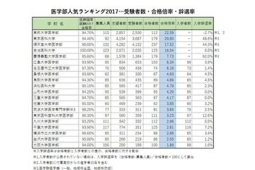 夏休みに入り、志望校の選定をしている受験生も多いだろう。リセマムでは志望校選びの一助に、2017年度の入試結果から国公私立大学医学部医学科の合格倍率や受験者数、入学辞退率をまとめた。