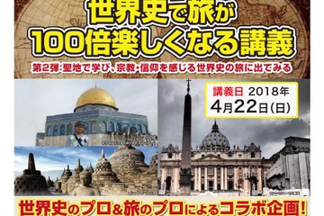高宮学園 代々木ゼミナールは2018年4月22日、世界遺産検定・TABIPPO・H.I.S.スタディツアーデスクと共催で「世界史で旅が100倍楽しくなる講義」を開講する。