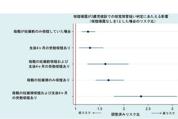 京都大学の研究グループは2018年7月23日、妊娠期の喫煙や出生後の受動喫煙が、子どもの聴覚発達に影響を与えることを見出したと発表した。妊婦や乳幼児のいる家庭に禁煙を促す必要性が再確認される結果となった。
