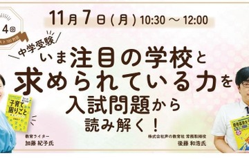 花まる子育てカレッジは「子育てベスト100」著者の加藤紀子氏による対談シリーズ第14回「中学受験いま注目の学校と求められている力を入試問題から読み解く!」を2022年11月7日、オンラインで開催する。今回のゲストは声の教育社の後藤和浩氏。