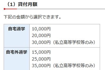 千葉県は10月17日、平成29年度の高校入学者を対象とした「千葉県奨学資金」の概要を公表した。無利子の貸与型奨学金で、中学3年時に申請する「予約募集」もある。貸付月額は、自宅通学が1~3万円、自宅外通学が1万5,000~3万5,000円。