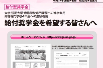 日本学生支援機構(JASSO)は、5月25日に各学校からJASSOへの推薦受付を一旦終了した「給付奨学金」について、推薦期間を8月4日まで延長すると発表した。申込み機会を十分に確保することがねらい。対象は、平成29年度に大学や専門学校などに進学した学生。
