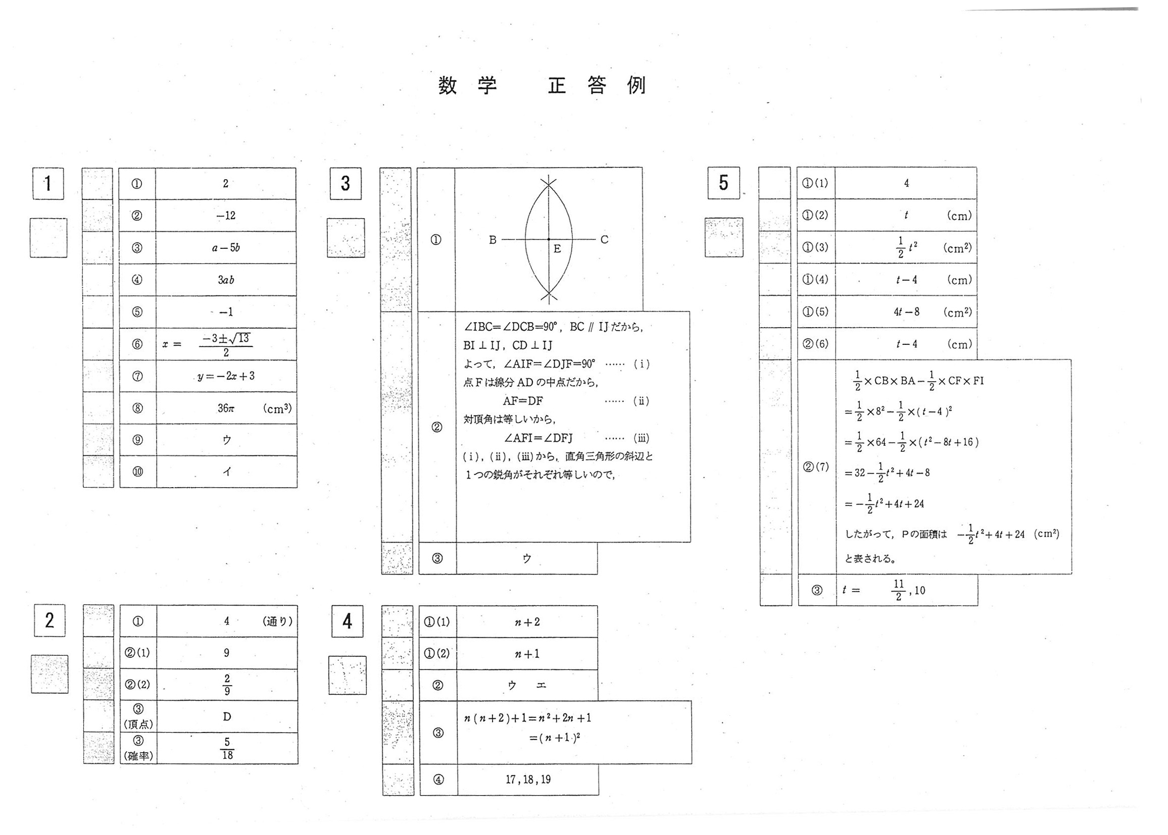 2019年度 岡山県公立高校入試[第1期 数学・正答]
