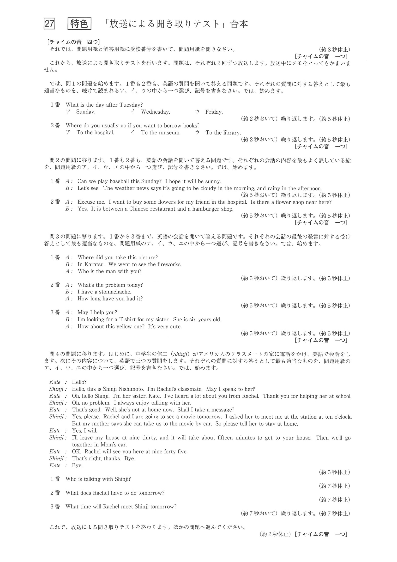 2015年度 佐賀県公立高校入試(英語 特色・問題)1/11