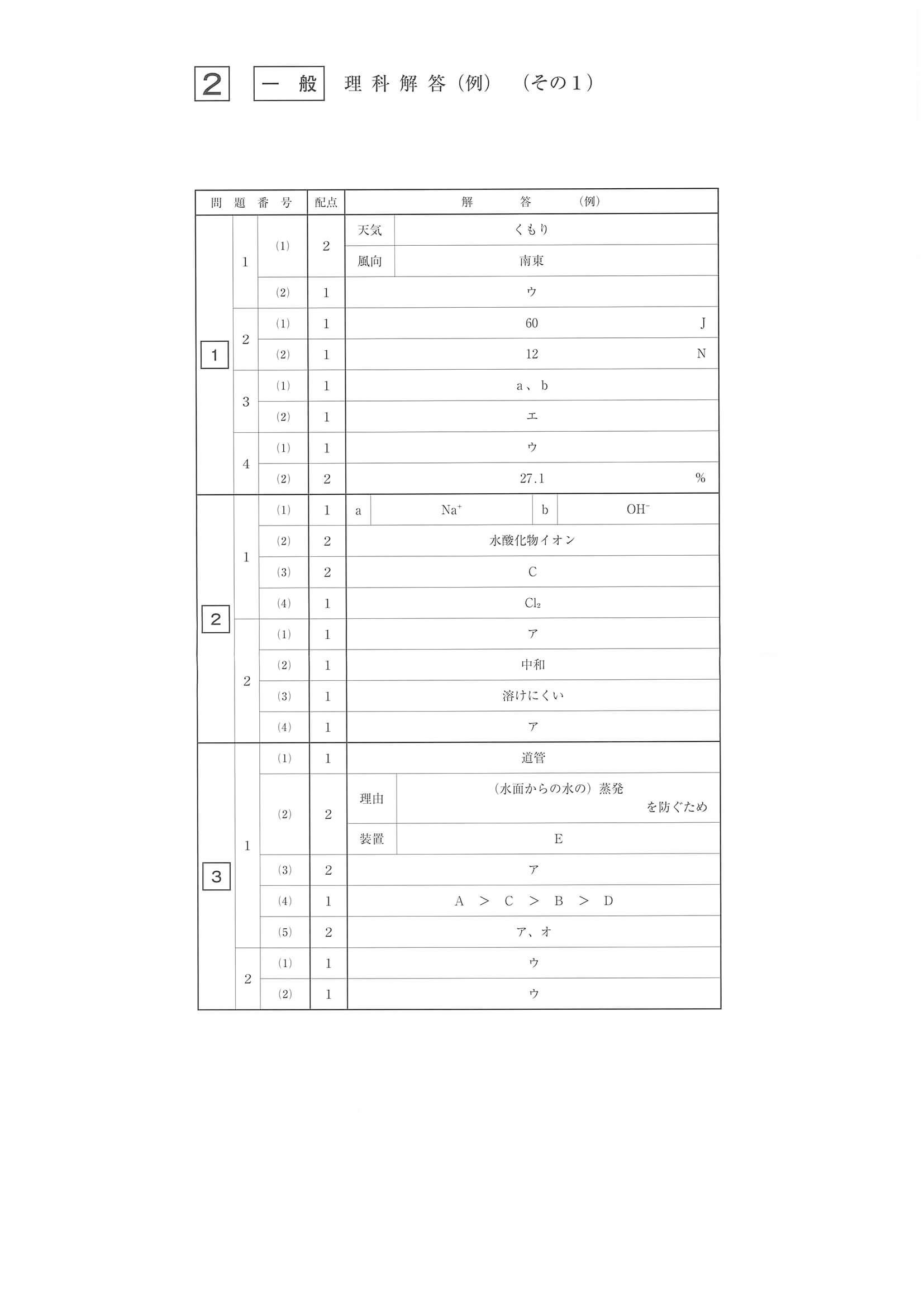 2020年度 佐賀県公立高校入試[一般選抜 理科・正答]1/2