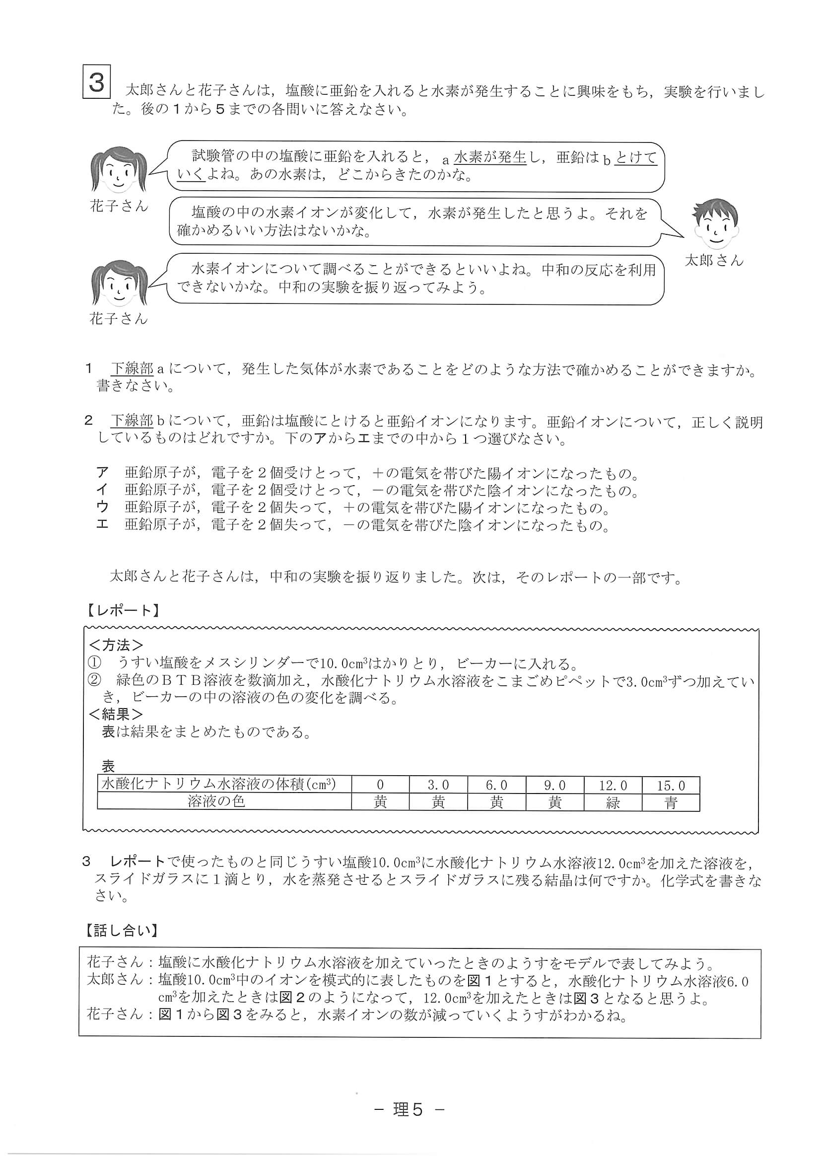 2020年度 滋賀県公立高校入試[標準問題 理科・問題]5/7