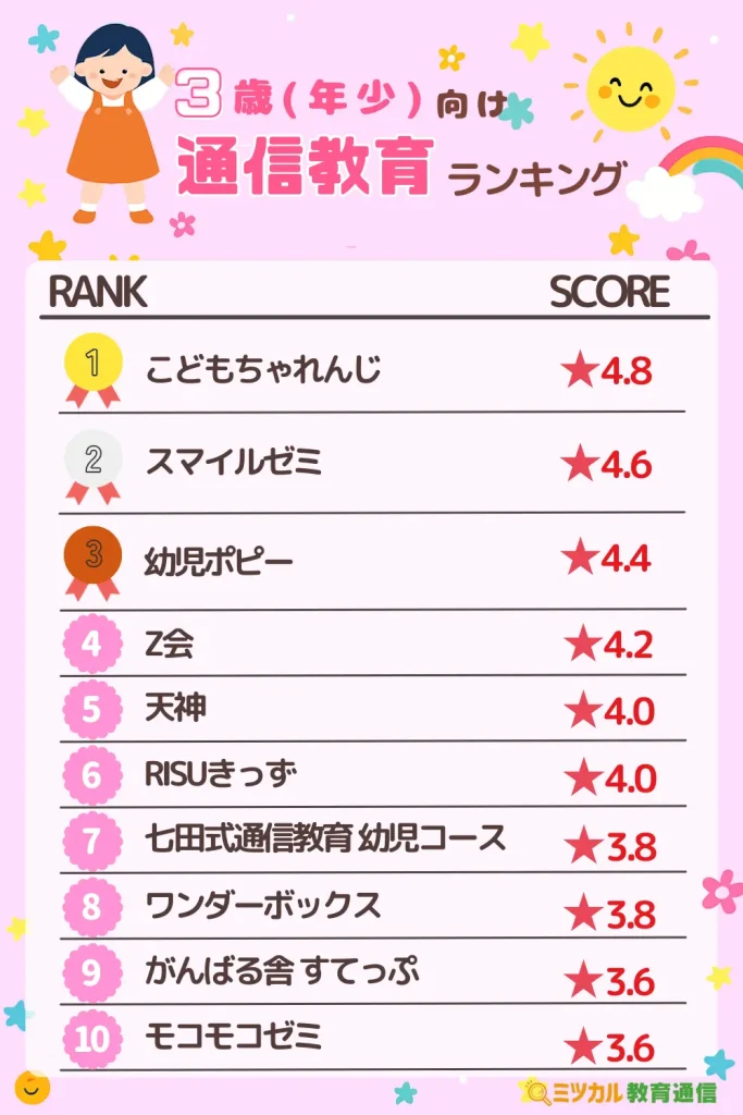 3歳(年少)におすすめの通信教育ランキング