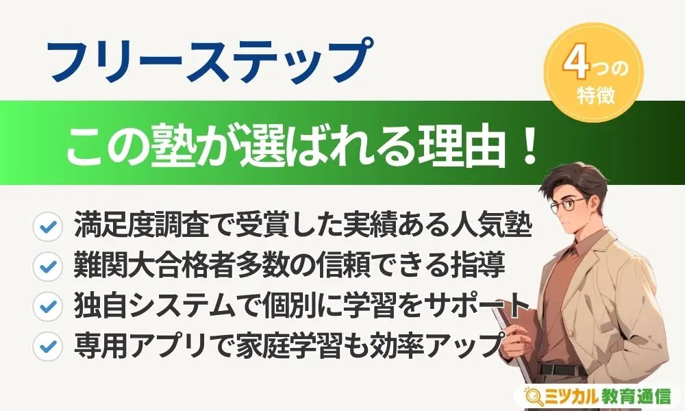 ミカ先生性格を考慮した講師の選抜制度や、自由選択による担任制が採用されている塾であれば、先生との信頼関係が築きやすいほか、万が一の際にいつでも先生の変更ができて保護者も安心ですよ。